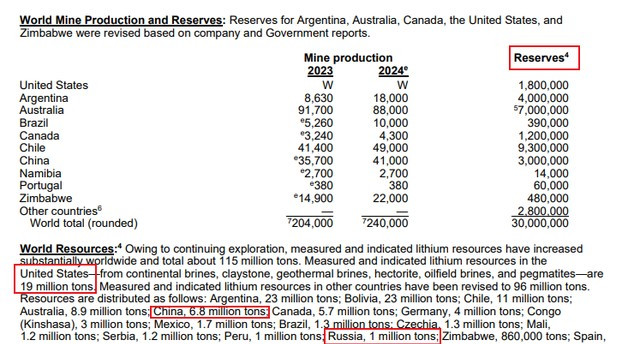 不过在锂资源量上,俄罗斯在世界舞台中却根本排不上号,甚至连美国的零头都不到。